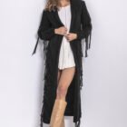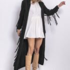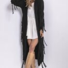 Boho cardigan med huva passar perfekt in i boho-stilen. Karaktäristiska mycket långa fransar gör koftan unik. Mjuk vid beröring. Använd den som du vill, med en kort eller lång klänning, med kjol eller byxor. Perfekt för ett speciellt tillfälle, för en promenad eller kaffe med en vän.